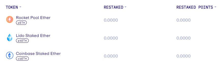 반면 리퀴드 리스테이킹은 코인베이스 cbETH, 로켓풀 rETH, 리도 stETH와 같은 리퀴드 스테이킹 토큰(LST)을 아이겐레이어에 입금하기만 하면 되기 때문에 훨씬 더 쉽습니다.