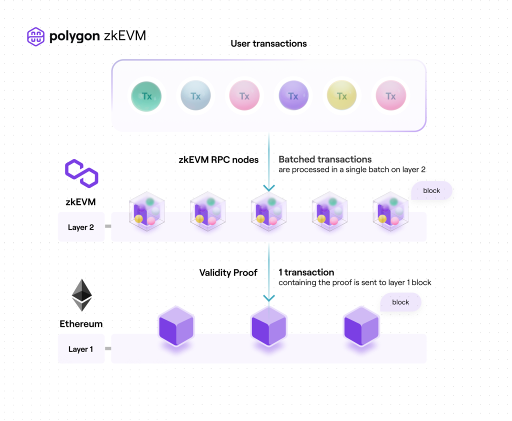 오늘날 이러한 솔루션 중 가장 인기 있는 솔루션은 플래그십 폴리곤 지분 증명(PoS) 체인입니다. 단순한 사이드체인과 달리 폴리곤은 오프체인에서 계산을 처리한 다음 블록 데이터의 일부를 이더리움에 커밋하여 이더리움의 보안을 이어받는 “커밋 체인” 시스템입니다. 궁극적인 비전은 지분 증명 체인을 Polygon zkEVM 실행 환경으로 마이그레이션하는 것입니다.